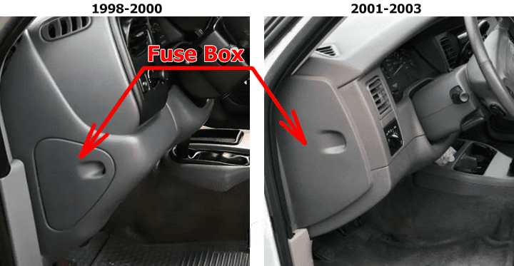 In this article, we will look at the first-generation Dodge Durango, produced from 1997 to 2003. Here you will find the 1998, 1999, 2000, 2001, 2002 and 2003 Dodge Durango fuse box outline, get information on the location of the fuse boxes inside the car and learn about the assignment of each fuse (fuse layout) and relay.