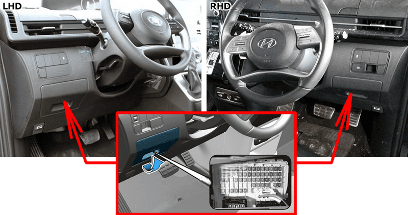 The minivan Hyundai Staria is available from 2021 to the present. In this article, you will find diagrams of the fuse box for the Hyundai Staria 2022 and 2023. You can also find information about the location of the fuse panels inside the car, and about the assignment of each fuse (fuse layout) and relay.