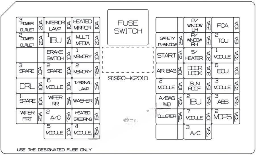 B+3 | 50A | ICU Junction Block (Fuse – DOOR LOCK, S/HEATER, SAFETY P/WINDOW, SUNROOF, Power Window Relay) |