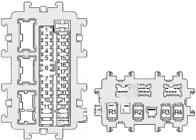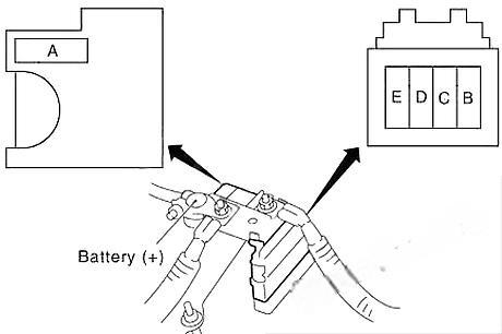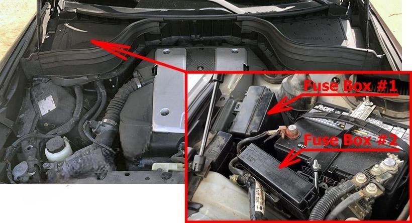 Fuse boxes are located next to the battery under the plastic cover. To access unit 1, you must remove part of the casing around the battery.