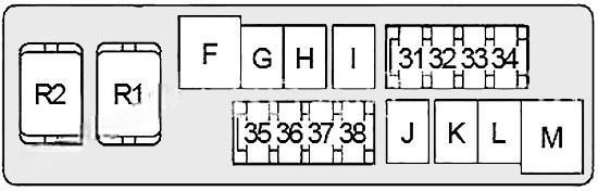 B | 100 | Fuse: “F”, “G”, “K”, “L”, “M”, “N”, “31”, “32”, “33”, “34”, “35”, “36”, “37”, “38” |