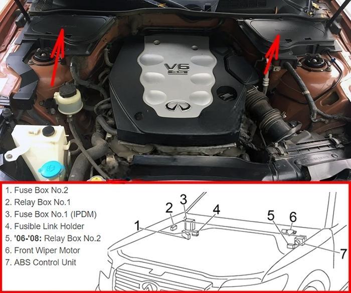 In this article, we look at the first-generation Infiniti FX (S50), which was produced from 2003 to 2008. You can find diagrams of the fuse box for the Infiniti FX35/FX45 for the years 2003, 2004, 2005, 2006, 2007 and 2008. You can also find information about where to find the fuse panels inside the car and about what each fuse and relay does.